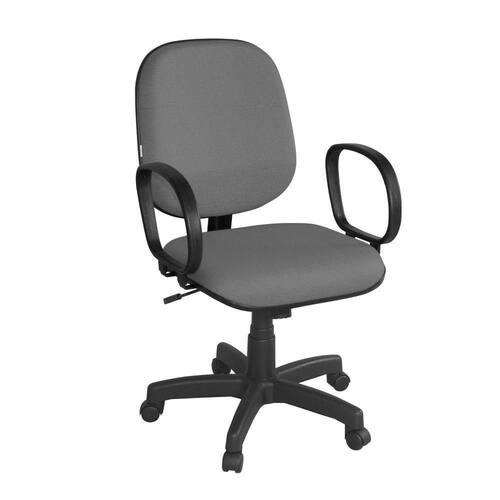Base giratória com relax e regulagem de altura com sistema a gás. Assento e encosto injetado e anatômico e tapeçado em tecido J. Serrano. Base e Braço na cor preta.