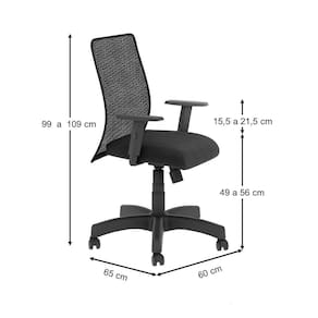 Base giratória com relax e regulagem de altura com sistema a gás. Encosto de Tela 100% Poliéster extra forte com resina anti-encolhimento. Assento com Espuma Injetada de alta qualidade. Tapeçada com tecido J. Serrano.