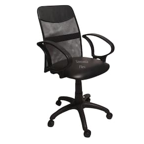 Cadeira Diretor - braço fixo - estrutura do encosto em aço, revestida em tecido tela com faixa e detalhe em corano - assento em madeira reflorestada - espuma injetada, revestida em couro sintético e bordas em pvc flexivel, mecanismo relax , que permite o inclinamento do encosto, base estrela em nylon com rodizio - regulagem de altura a gás. Marca: Sintonia Flex