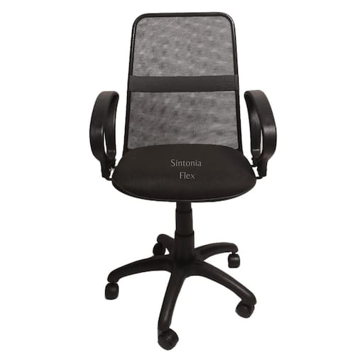 Cadeira Diretor - braço fixo - estrutura do encosto em aço, revestida em tecido tela com faixa e detalhe em corano - assento em madeira reflorestada - espuma injetada, revestida em tecido j.serrano anti-chamas e bordas em pvc flexivel, mecanismo relax , que permite o inclinamento do encosto, base estrela em nylon com rodizio - regulagem de altura a gás. Marca: Sintonia Flex