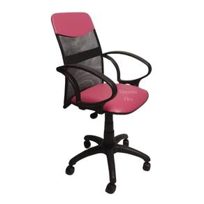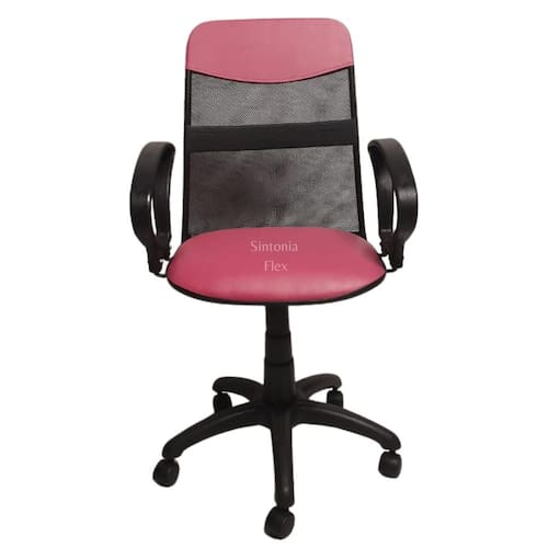 Cadeira diretor tela giratória com faixa e braço fixo corano pink Cadeira Diretor - braço fixo - estrutura do encosto em aço, revestida em tecido tela com faixa e detalhe em corano - assento em madeira reflorestada - espuma injetada, revestida em couro sintético e bordas em pvc flexivel, flange universal, base estrela em nylon com rodizio - regulagem de altura a gás. Marca: Sintonia Flex