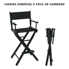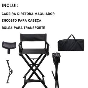 Especificações: - cor: preto - material: alumínio estrutura e nylon assento e encosto - dimensões do assento: 58x42cm largura x profundidade - limite de peso máximo: 180 kg; - altura até o assento: 75 cm; - altura máxima até o encosto de cabeça: 140cm cm; - peso do produto: 5,5kg - acompanha: cadeira diretora/maquiadora, encosto para cabeça, apoio para o pés, bolsa de transporte Marca: Não Informado Ean: 7898962846001