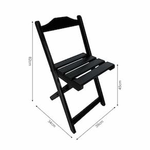 O produto é uma ótima opção para bares, restaurantes, estabelecimentos comerciais, áreas de lazer e também para sua casa. Material de grande custo benefício, sem deixar a qualidade de lado. São peças que asseguram resistência, segurança e muito conforto. Seu design permite que seja encaixado em qualquer tipo de ambiente, trazendo um charme a mais para o seu espaço. Por ser dobrável, facilita sua remoção do local, economizando muito mais tempo e esforço na hora da limpeza.Tipo: CadeirasModelo: Dobrável Cor: PretoMedidas: Altura do assento: 45 cmLargura assento: 39 cmComprimento assento: 34 cmAltura encosto: 82 cmATENÇÃOIMAGENS MERAMENTE ILUSTRATIVAS REALIZADO EDIÇÃO, PODENDO HAVER UMA PEQUENA VARIAÇÃO DE COR DEPENDENDO DE CADA TELA OU MONITOR.Cadeira DobrÃvel de Madeira MaciÃa Preta Marca: Wood Mobilia