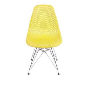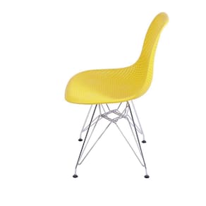 Cadeira Eames Dsr Colmeia Polipropileno Azul Petroleo Base Metal Cromada A cadeira Eames Dsr Colmeia é uma peça para quem busca simplicidade e sofisticação na sala de jantar, mas não abre mão de resistência. om concha em polipropileno com detalhes vazados, base em madeira e sapatas de silicone que não danificam o piso. É uma versão do clássico do Design que nunca envelhece, A cadeira Eiffel é a peça ideal para completar a sua decoração com estilo, seja na sua sala de jantar ou qualquer outro cômodo da casa. A cadeira é uma ótima alternativa tanto para espaços pequenos quanto grandes, isto porque as cadeiras podem ser colocadas em diferentes formações. Por exemplo, elas podem ser colocadas ao redor de uma mesinha, podem ser colocadas em duplas próximas ao sofá da sala, enfim, a localização das cadeiras fica por sua conta. Tenha certeza que de qualquer maneira você conseguirá um efeito fantástico.