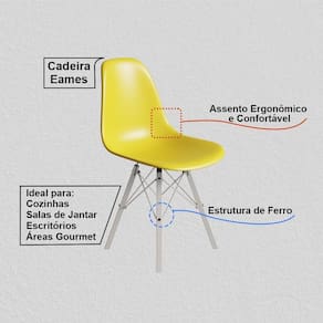 A Cadeira Eames combina design moderno, conforto e resistência, sendo uma excelente escolha para compor salas de jantar, escritórios, cozinhas ou ambientes comerciais. Inspirada no clássico estilo Eames, ela traz um visual atemporal que valoriza qualquer espaço com elegância e personalidade.