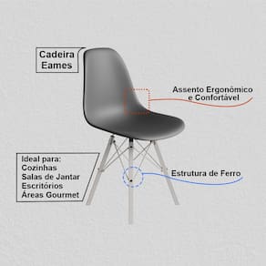 Características: Modelo: Cadeira Eames Material da Estrutura: Ferro Cor da Estrutura: Branco Material do Assento: Polipropileno Cor do Assento: Cinza Design moderno e funcional