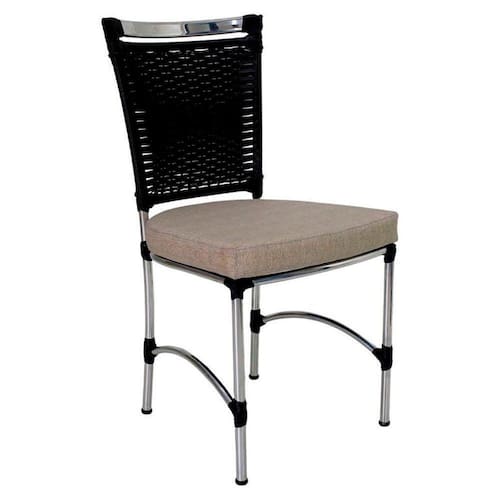 Cadeira Em Alumínio E Fibra Sintética Jk Cozinha Edícula Preto E Fundo Palha
