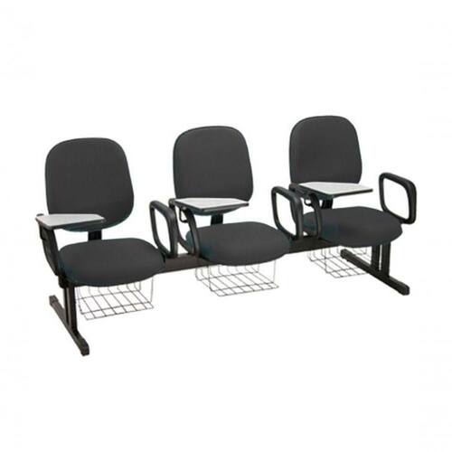 Cadeira Diretor Universitária com prancheta escamoteável em longarina para 03 lugares para Escolas Linha Uno - Tonalidade da Cor do Assento e Encosto: Preto - Marca: Design Office Móveis - Revestimento do Assento e Encosto: Tecido