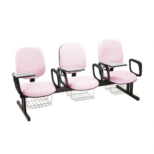 Cadeira Diretor Universitária com prancheta escamoteável em longarina para 03 lugares para Escolas Linha Uno - Tonalidade da Cor do Assento e Encosto: Rosa Claro - Marca: Design Office Móveis - Revestimento do Assento e Encosto: Material Sintético