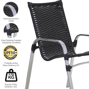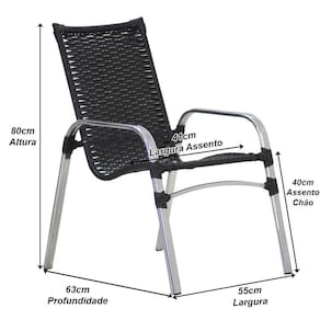 Cadeira Emily Em Alumínio Para área, Jardim, Piscina Trama Preto