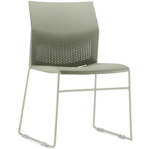 Material do encosto e assento injetado em Polipropileno (PP), na tonalidade Verde.