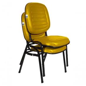 Cadeira Empilhável Gomada para Igrejas Evangélicas Linha Holy com gancho lateral para encaixe - Tonalidade da Cor do Assento e Encosto: Amarelo Mostarda - Marca: Design Office Móveis - Revestimento do Assento e Encosto: Material Sintético