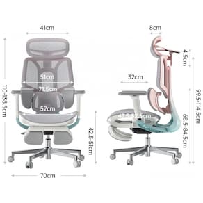 Os apoios de braço 6D oferecem regulagens em 6 eixos: altura de 7,5 cm, deslize front/back de 3 cm, deslocamento lateral de 3 cm, rotação em 70° com 3 estágios, rebatimento de 40° em 2 estágios e inclinação sincronizada de 6°, com base giratória 360° para superfícies variadas. O assento possui ajuste de profundidade de 5 cm, com estrutura em nylon e tecido respirável para ventilação, combinada com chassi de detecção gravitacional que responde a mudanças de peso e postura.