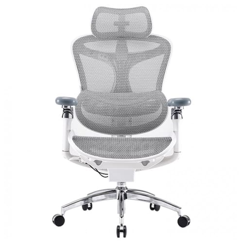 A cadeira ergonômica de escritório SIHOO Doro C300 Pro incorpora encosto flexível triangular em malha respirável integral que se adapta a movimentos laterais do tronco superior, com regulagem em 4 posições e elevação de 6 cm com retorno automático ao nível inferior quando posicionada no máximo. O encosto de cabeça 3D regulável permite ajustes de 4,5 cm vertical, 6,5 cm anteroposterior e inclinação de 20°, sincronizando com estrutura dinâmica para alinhamento contínuo.