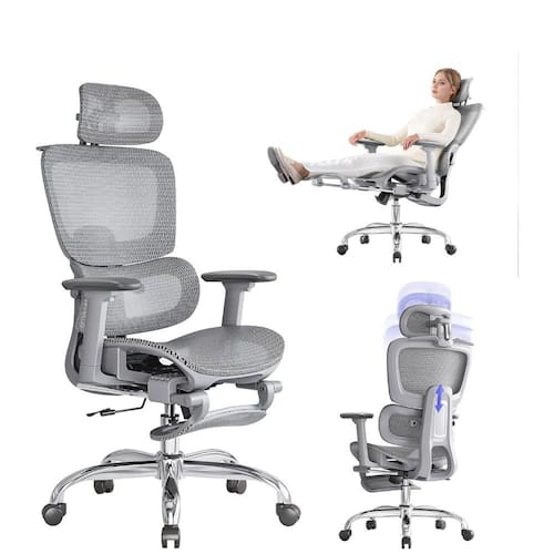 - Modelo: LarkLeaves L10 - Cor: Cinza (Grey) - Material do Revestimento: Mesh Respirável de Alta Densidade - Apoios de Braço: 3D (Ajuste de Altura, Profundidade e Ângulo) - Mecanismo de Reclinação: Sincronizado com Trava de Ângulo - Apoio de Pé: Retrátil e Integrado - Base: Resistente com Rodízios de Baixo Ruído - Ajuste de Altura: Pistão a Gás Classe 4 - Suporte de Cabeça: Ajustável em Altura e Inclinação - Suporte Lombar: Dinâmico e Ergonômico Marca: Não Informado