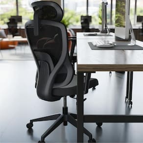 Estrutura em Nylon, assento em espuma revestido em Poliéster, encosto revestido em Mesh, apoio de cabeça em Mesh, almofada dos braços em PU, rodas em Nylon.Vendido e entregue por ACIMAQ