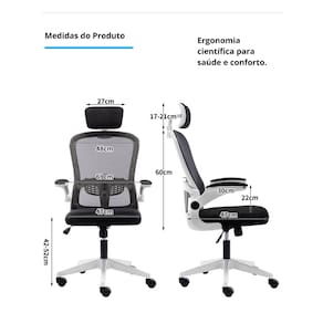 Seu encosto em tela Mesh respirável proporciona ventilação e suporte adequado para as costas, enquanto o assento estofado macio aumenta o conforto. O apoio de cabeça ajustável e os braços acolchoados garantem suporte extra, ajudando a reduzir tensões no pescoço e nos ombros.