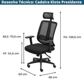 Cadeira Escritório Giratória Kioto Presidente Or Design Encosto Tela Mesh Preta Base Rodízio A Cadeira Kito possui assento estofado e encosto em tela com apoio de cabeça, oferecendo conforto e boa ventilação ao usuário. Seus braços ajustáveis proporcionam suporte ergonômico personalizado, enquanto o sistema Syncron permite movimentos sincronizados entre o assento e o encosto, promovendo uma postura mais saudável. A base em alumínio garante durabilidade e estabilidade, e os rodízios em PU oferecem mobilidade suave sem riscar o piso. Sempre sem abrir mão do conforto e sofisticação, a Or Design é importadora de móveis perfeita para quem procura qualidade, design e charme. Desde móveis para decoração em geral até móveis para escritório a Or Design oferece o que há de melhor no mercado. Encontre aqui o móvel perfeito para o seu ambiente. Produto: Cadeira Escritório Giratória Kioto Presidente Or Design Encosto Tela Mesh Preta Base Rodízio | Tonalidade: Preto | Ambiente indicado: Escritório | Material da estrutura: Plástico | Montagem: Desmontado | Capacidade de Peso: 100 | Cor: Preto | Materiais: Polipropileno, Tela Mesh | Estilo de Decoração: Urbano Contemporâneo | Linha: Kioto | Marca: Ór Design | Peso Suportado (kg): | Tipo de Base: Giratória | Área de Uso: Interna | Garantia (tempo): 6 meses | Garantia (descritivo): Garantia contra de fabricação de 06 meses. Consulte as nossas políticas. | Peso (kg): | Medidas: Largura (cm): | Medidas: Profundidade (cm): | Medidas: Altura (cm): | Medidas: Altura até o Assento (cm): de a | Medidas: Altura até o Braço (cm): de a | Medidas: Regulagem de altura (cm): de a | Possui Braços?: Sim | Possui Braços Reguláveis?: Não | Possui Regulagem de Altura?: Sim | Entregue Montado?: Não | Possui Manual de Montagem?: Acompanha o Produto | Origem do Produto: | Conservação e Manutenção: Limpeza com pano úmido em solução de água e detergente neutro. Secar em seguida. | Acabamento: Fosco | Possui Rodízios?: Sim | Tipo de Assento: Reclinável | Tipo de Encosto: Presidente | Conteúdo da Embalagem: 01 Cadeira