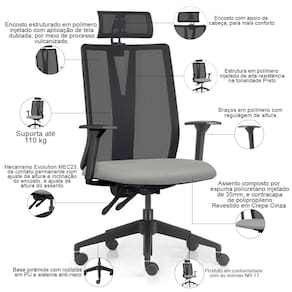 Equipada com um mecanismo Evolution, um sistema de contato permanente, essa cadeira giratória abraça as suas necessidades, permitindo ajustes precisos na altura do assento, do encosto e dos braços. Cada detalhe foi pensado para proporcionar um suporte ideal, respeitando o biotipo do usuário e promovendo uma postura saudável durante longas horas de trabalho. Já a base pirâmide, adornada com rodízios em PU e sistema anti-risco, desliza suavemente sobre qualquer superfície, garantindo movimentos ágeis e seguros. Por fim, o encosto com apoio de cabeça completa a experiência, permitindo que você se concentre no que realmente importa, enquanto sua mente flui livremente.