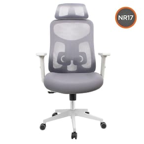 Cadeira Escritório Nr-17 Everest Presidente C/ Braços Fratini Encosto Tela Gelo-cinza Base Rodízio A Cadeira Presidente Everest é a escolha ideal para quem busca conforto, ergonomia e estilo no ambiente de trabalho. Com estrutura de polipropileno com recortes e tela de alta resistência, ela é construída para suportar até 150 kg, oferecendo durabilidade e funcionalidade. A base de nylon e os rodízios com borda de PU garantem um movimento suave, ideal para o uso diário. Disponível nas cores preto e gelo, o Everest fornece ajustes completos para um conforto personalizado. Conta com regulagem de altura do assento, ajuste de altura e direção dos braços (cima/baixo, frente/trás), orientação do encosto com sistema sincronizado e travamento em qualquer posição. Seu assento com espuma injetada de densidade 50 g/cm oferece conforto, enquanto o apoio lombar e o encosto de cabeça ajustável garantem uma postura saudável, distribuindo o peso de forma equilibrada e prevenindo dores nas costas. Certificado pela NR-17, o Everest Presidente é ideal para quem busca um ambiente produtivo e confortável. A Fratini valoriza a identidade e acredita que o ambiente deve traduzir o estilo e vida de cada pessoa conforme o seu estilo e ambiente com isso trazendo moveis estilosos e elegantes com linhas marcantes e um design único para cada ambiente e móvel. Uma marca de móveis contemporâneos, modernos e descontraídos desenvolvidos para dar um toque especial a todos os espaços. O objetivo é surpreender os clientes com produtos inovadores, que tragam, harmonia, personalidade e requinte. Simplesmente encantar além de ser funcional e moderno. Cor: Preto | Estilo de Decoração: Urbano Moderno | Linha: Everest | Marca: Fratini | Peso Suportado (kg): | Tipo de Base: Giratória, Estrela, Rodízios | Atributos: Confórtável, Durável, Giratória, Regulagem de Altura | Área de Uso: Interna | Garantia (tempo): 6 meses | Garantia (descritivo): Garantia contra de fabricação de 06 meses. Consulte as nossas políticas. | Peso (kg): | Medidas: Largura (cm): | Medidas: Profundidade (cm): | Medidas: Altura (cm): | Medidas: Altura até o Assento (cm): de a | Medidas: Altura até o Braço (cm): de a | Medidas: Regulagem de altura (cm): de a | Possui Braços?: Sim | Possui Braços Reguláveis?: Sim | Possui Regulagem de Altura?: Sim | Entregue Montado?: Não | Possui Manual de Montagem?: Acompanha o Produto | Origem do Produto: | Conservação e Manutenção: Limpeza com pano úmido em solução de água e detergente neutro. Secar em seguida. | Acabamento: Fosco | Possui Estrutura Giratória?: Sim | Possui Regulagem de Inclinação?: Sim | Tipo de Assento: Reclinável | Tipo de Encosto: Presidente | Densidade da Espuma: 50 g/ cm | Estado de Origem: SP | Conteúdo da Embalagem: 01 Cadeira | Produto: Cadeira Escritório NR-17 Presidente c/ Braços Everest Fratini Tela Gelo-Cinza Base Rodízio Nylon | Tonalidade: Cinza | Ambiente indicado: Escritórios | Material da estrutura: Plástico | Montagem: Desmontado | Capacidade de Peso: 150
