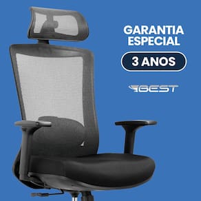Destaques do Produto Cadeira ergonômica projetada para conforto prolongado Base giratória cromada com rodízios de 360° para mobilidade completa Regulagem de altura com sistema de amortecimento a gás Encosto e assento em tela mesh, proporcionando ventilação e resistência Apoio de cabeça ajustável em altura e ângulo Suporte lombar personalizável para postura ideal Apoios de braços em soft touch, ajustáveis em altura Sistema Back System com travas para maior estabilidade Capacidade de suporte de até 150kg com garantia de 3 anos