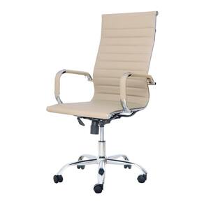 Cadeira Escritório Stripes Presidente PU Nude Base Giratória Cromada Altura Ajustável - Bege Claro