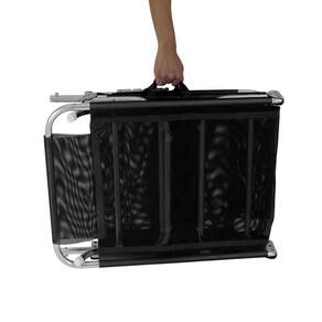 · Tela 100% Textilene (Poliéster com revestimento em PVC) · Estrutura resistente em tubos de Alumínio · Ajustável em 4 posições · Dobrável · Sapatas antiderrapante · Contém alça para facilitar o transporte · Mais praticidade e conforto · Produzida com materiais que garantem a qualidade e durabilidade do produto