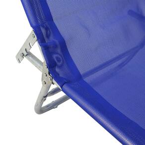 Dimensões ajustáveis- Posição 1: 1,65 m x 60 cm x 84 cm.- Posição 2: 1,82 m x 60 cm x 72 cm.- Posição 3: 1,93 m x 60 cm x 60 cm.- Posição 4: 1,98 m x 60 cm x 42 cm. Itens Inclusos Cadeira Espreguiçadeira em Poliéster e Alumínio Azul 414702 Bel Perguntas Frequentes (FAQ) Pergunta: Qual o peso máximo suportado pela cadeira?