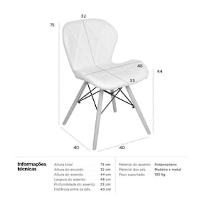 Cadeira Estofada Charles Eames Eiffel Slim Wood Confort Creme Cadeira estofada Charles Eames Eiffel Slim Wood confort Creme - Características Gerais do Produto: - Material do assento: Couro sintético - Altura: 44 cm - Largura do assento: 48 cm - Produto empilhável: Não - Distância entre os pés: 41 cm - Profundidade do assento: 35 cm - Peso suportado: 130 kg - Limpeza e cuidados: Pano úmido sem aplicação de produtos químicos ou abrasivos - Necessita montagem: Sim Garantia: - 90 dias
