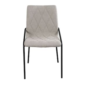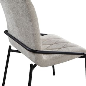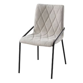 Cadeira Estofada com Costura Decorativa e Base em Aço Carbono Pintura Epóxi – Yara Exclusiva Linho Lincoln Bege - Preto Fosco Epóxi -