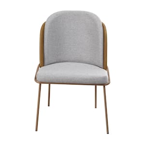 Cadeira Estofada Compossê com Base em Aço Carbono Pintura Epóxi – Maya Exclusiva Linho Lincoln Cinza - Champanhe Epóxi -