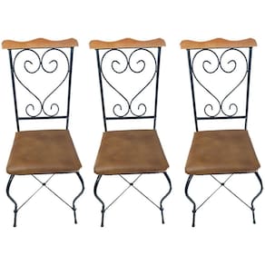 Procurando por cadeiras elegantes e confortáveis para sua cozinha? Então você precisa conhecer a Cadeira de Ferro Estofada Impermeável Artesanal.Totalmente feitas à mão por um artesão experiente, cada uma dessas cadeiras é um verdadeiro exemplo de qualidade e atenção aos detalhes.A estrutura das cadeiras é feita em ferro com pintura eletrostática que não enferruja, possui reforços estruturais que aumentam ainda mais a resistência das cadeiras, que são testadas até 150kg.O assento acolchoado é feito com material resistente e ótimo acabamento, sua espuma de boa qualidade não irá ceder.Feita para durar, todos estes detalhes garantem que as suas cadeiras sejam usadas por muitos anos sem perder sua beleza O projeto ergonômico com muito conforto no encosto e o assento acolchoado agrega um conforto extra, proporcionando uma experiência incrível para você e seus convidados durante as refeições.O estofado impermeável dessas cadeiras é ideal para quem busca praticidade e facilidade na limpeza, tornando-as uma excelente opção para quem tem crianças ou animais de estimaçãoE para proteger o seu piso, as cadeiras possuem pezinhos de plástico emborrachado que não deixam riscosO design das cadeiras é realmente bonito e sofisticado, com um coração feito em arabesco no encosto, com acabamento em madeira maciça.Além de outro detalhe incrível: com o assento é feito em couro ecológico na mesma tonalidade da madeira que harmoniza perfeitamente com a estrutura de ferro das cadeiras, criando um conjunto elegante e moderno.Esses detalhes de acabamento mostram o cuidado e a atenção que o artesão teve ao criar essas peças únicas, garantindo uma qualidade superior e durabilidade às cadeiras, agregando ainda mais valor à decoração da sua cozinha.Não perca mais tempo procurando por cadeiras de qualidade, Cadeira de Ferro Estofada Impermeável Artesanal é a escolha certa para quem quer qualidade, conforto, beleza e durabilidadeMedidas da cadeira:Largura total 40 cmComprimento 40 cmAltura do encosto 51 cmAltura do assento 47 cmAltura total 97 cmLargura do assento 37 cmComprimento do assento 37 cm