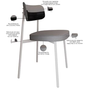 Assento produzido em MDF com espuma D-33, 40mm.