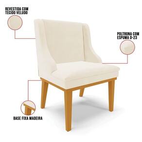 Os melhores momentos que passamos com a nossa família e amigos são ao redor da mesa durante as refeições, por isso, a escolha da cadeira é tão importante. Além de compor a decoração do ambiente, ela precisa ser confortável e resistente, assim como a Cadeira Estofada Lia que suporta até 120 kg, conta com estrutura ecologicamente correta em madeira de eucalipto proveniente de reflorestamento e base fixa em madeira, que agrega qualidade e durabilidade ao produto. Todo o conforto vem da espuma de densidade D-23 e do tecido do assento e do encosto. O revestimento desse móvel incrível é em Veludo, tecido nobre e envolvente que traz a sensação de aconchego, possui fibras altamente resistentes, macio ao toque, de fácil limpeza, propicia luxo e elegância ao ambiente.