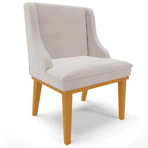Os melhores momentos que passamos com a nossa família e amigos são ao redor da mesa durante as refeições, por isso, a escolha da cadeira é tão importante. Além de compor a decoração do ambiente, ela precisa ser confortável e resistente, assim como a Cadeira Estofada Lia que suporta até 120 kg, conta com estrutura ecologicamente correta em madeira de eucalipto proveniente de reflorestamento e base fixa em madeira, que agrega qualidade e durabilidade ao produto. Todo o conforto vem da espuma de densidade D-23 e do tecido do assento e do encosto. O revestimento desse móvel incrível é em Veludo, tecido nobre e envolvente que traz a sensação de aconchego, possui fibras altamente resistentes, macio ao toque, de fácil limpeza, propicia luxo e elegância ao ambiente.