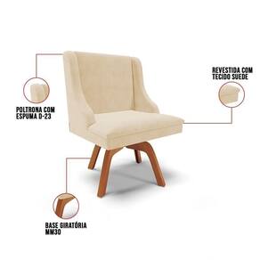 Conforto e elegância são as palavras que definem a Cadeira Estofada para Sala de Jantar Base Giratória de Madeira Lia Suede Bege, da Ibiza, conheça os detalhes!