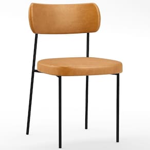 Encosto e assento estofados com espuma laminada, revestidos em Couríssimo na cor Whisky.