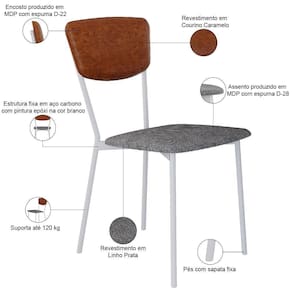ProductHeight: 83 cm | OriginState: PR | ProductWeight: 6,5 kg | ProductContents: 01 Cadeira | SupplierSimpleName: Cadeira Estofada Para Sala de Jantar Village Branco C01 Linho Prata Courino Caramelo - Lyam Decor | ColorSimple: Caramelo | Material: Estrutura em Aço e MDP, Revestimento em Linho, couro sintético e espuma | MaterialFamily: Aço, MDP, Linho, Couro sintético e espuma | Color: Caramelo | ColorSupplier: Caramelo | ProductWarranty: 90 dias após o recebimento do produto | ProductWidth: 43 cm | OriginCountry: Brasil | Model: Village | ColorFamily: Caramelo | ProductLength: 53 cm | ProductInstructions: Produto para uso em ambiente interno, nao devendo ficar exposto ao sol, calor e umidade excessivos. | SizeDescription: Altura: 83 cm x Largura: 43 cm x Profundidade: 53 cm | Cor: Amarelo
