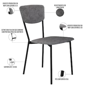 Color: Prata | ColorFamily: Prata | ColorSimple: Prata | ColorSupplier: Prata | Material: Estrutura em Aço, MDP, Revestimento em Linho e espuma | MaterialFamily: Aço, MDP, Linho e espuma | Model: Village | OriginCountry: Brasil | OriginState: PR | ProductContents: 01 Cadeira | ProductHeight: 83 cm | ProductInstructions: Produto para uso em ambiente interno, nao devendo ficar exposto ao sol, calor e umidade excessivos. | ProductLength: 53 cm | ProductWarranty: 90 dias após o recebimento do produto | ProductWeight: 6,5 kg | ProductWidth: 43 cm | SizeDescription: Altura: 83 cm x Largura: 43 cm x Profundidade: 53cm | SupplierSimpleName: Cadeira Estofada Para Sala de Jantar Village Preto C01 Linho Prata - Lyam Decor