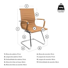 Cadeira Presidente Boston Esteirinha Caramelo, base fixa em metal com apoio antideslizante.