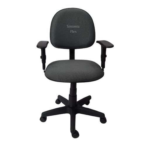 Cadeira executiva giratoria com braço de regulagem de altura e pistão a gás com base de ferro tecido cinza/preto Cadeira de escritório Executiva - regulagem de altura a gás - espuma injetada , braço com regulagem - revestida em tecido j.Serrano anti-chama - bordas em pvc flexivel - pintura eletrostatica - base de ferro com capa Marca: Sintonia Flex