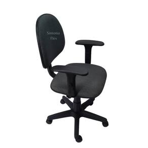 Cadeira executiva giratoria com braço de regulagem de altura e pistão a gás com base de ferro tecido cinza/preto Cadeira de escritório Executiva - regulagem de altura a gás - espuma injetada , braço com regulagem - revestida em tecido j.Serrano anti-chama - bordas em pvc flexivel - pintura eletrostatica - base de ferro com capa Marca: Sintonia Flex