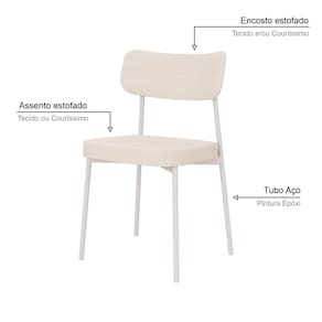 Cadeira Fixa Estofada Mynna c/Pés Brancos - Bege Médio