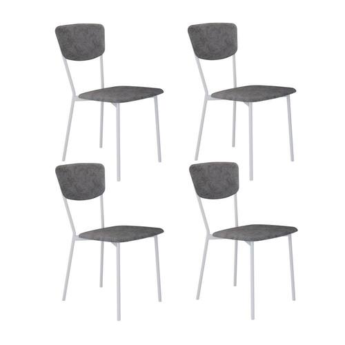 Cadeira Fixa Estofada Vintage Retrô com 4 Unidades Prata/Branco