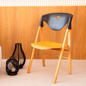 Conta com design diferenciado, ela é uma cadeira montável e sua produção une diversos materiais como: madeira, plástico e metal das peças de fixação.