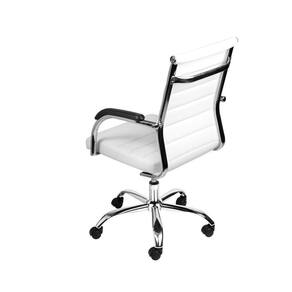 Cadeira Florença Baixa Branca em Couro Sintético Base Rodízio possui Assento e encosto em PU, com base cromada giratória, sistema relax e rodízios em PU que não riscam o piso.. Medidas: Altura do chão ao assento: 42 a 51cm / altura do chão ao braço: 62 a 70,5cm / Altura do chão ao encosto: 91 a 99cm / Largura: 54cm / Comprimento: 48cm