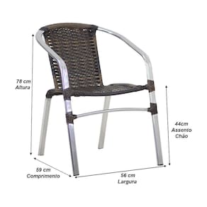 Especificacoes Tecnicas: Cadeira Floripa: - Altura total: 78 cm - Altura assento ao chao: 44cm - Largura: 56cm - Profundidade: 59cm - Suporta ate 180 kg