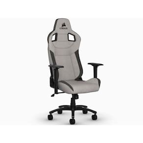 A cadeira gamer corsair t3 rush combina um design inspirado pelas corridas e conforto ergonômico com um exterior suave em tecido respirável, almofada acolchoada para o pescoço e suporte para lombar em viscoelástico.