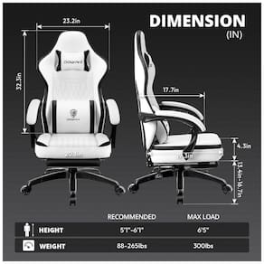 As rodas giratórias suaves de 360 graus permitem um movimento fácil e silencioso. O travesseiro lombar com um cabo USB proporciona uma massagem relaxante quando você se sente cansado. O encosto pode ser inclinado de 90 a 150 graus, tornando o adequado para trabalho, jogos, leitura ou cochilos. O apoio de cabeça e o travesseiro lombar também podem ser ajustados para garantir o máximo conforto.
