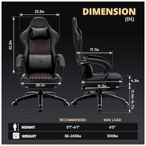 ALMOFADA DE MOLAS BOLSAS autênticos Incorporamos molas ensacadas independentes comumentes em colchões em nossa cadeira de jogos. As músicas distribuem o peso do corpo uniforme e forneçam o adequado do suporte, aliviando efetivamente uma pressão na região lombar. Além disso, o design apresenta os orifícios de ar que aumentam uma capacidade de carga do sistema de molas e, no mesmo tempo, minimizam ou ruem. ÁREA DE ASSENTO MAIOR Projeto de almofada de assento plano de referência uma área de assento mais espaçosa, com pelo menos de largura extra em comparação com as almofadas táticas de cadeiras de jogos. Uma remoção das mais tarde, reduzir a pressão nas pernas, permitir uma experiência de sentar mais relaxada e confortável. COURO PU ALTAMENTE RESPONSÁVEL Esta cadeira de jogo apresenta couro PU altamente respirável, proporcionando ventilação superior 33 vezes mais eficaz que o couro PU tradicional. O couro PU macio e flexível é costurado com habilidade para um nível excepcional de conforto, melhorando sua experiência geral de sentar. As rodas giratórias suaves de 360 graus permitem um movimento fácil e silencioso. O travesseiro lombar com um cabo USB proporciona uma massagem relaxante quando você se sente cansado. O encosto pode ser inclinado de 90 a 150 graus, tornando o adequado para trabalho, jogos, leitura ou cochilos. O apoio de cabeça e o travesseiro lombar também podem ser ajustados para garantir o máximo conforto.